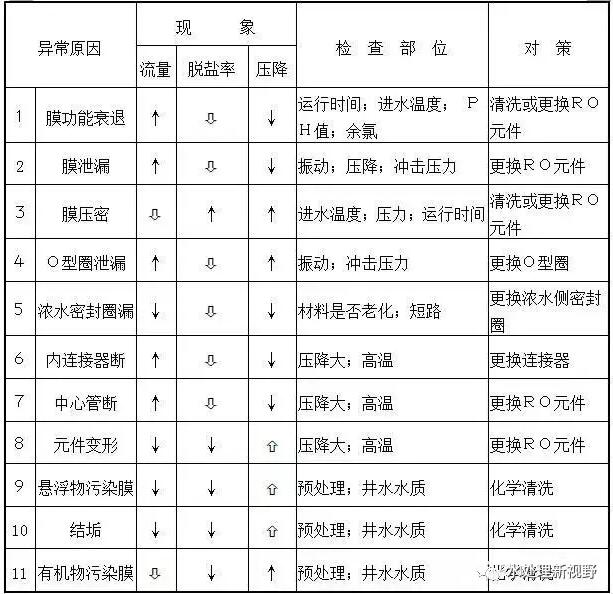 3.RO組件污染后癥狀和對策:
