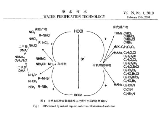 看起來(lái)我們只是做了一步消毒,實(shí)際上天然有機(jī)物在氯消毒反應(yīng)過(guò)程中發(fā)生了什么?下面這張圖一看,就一目了然了。